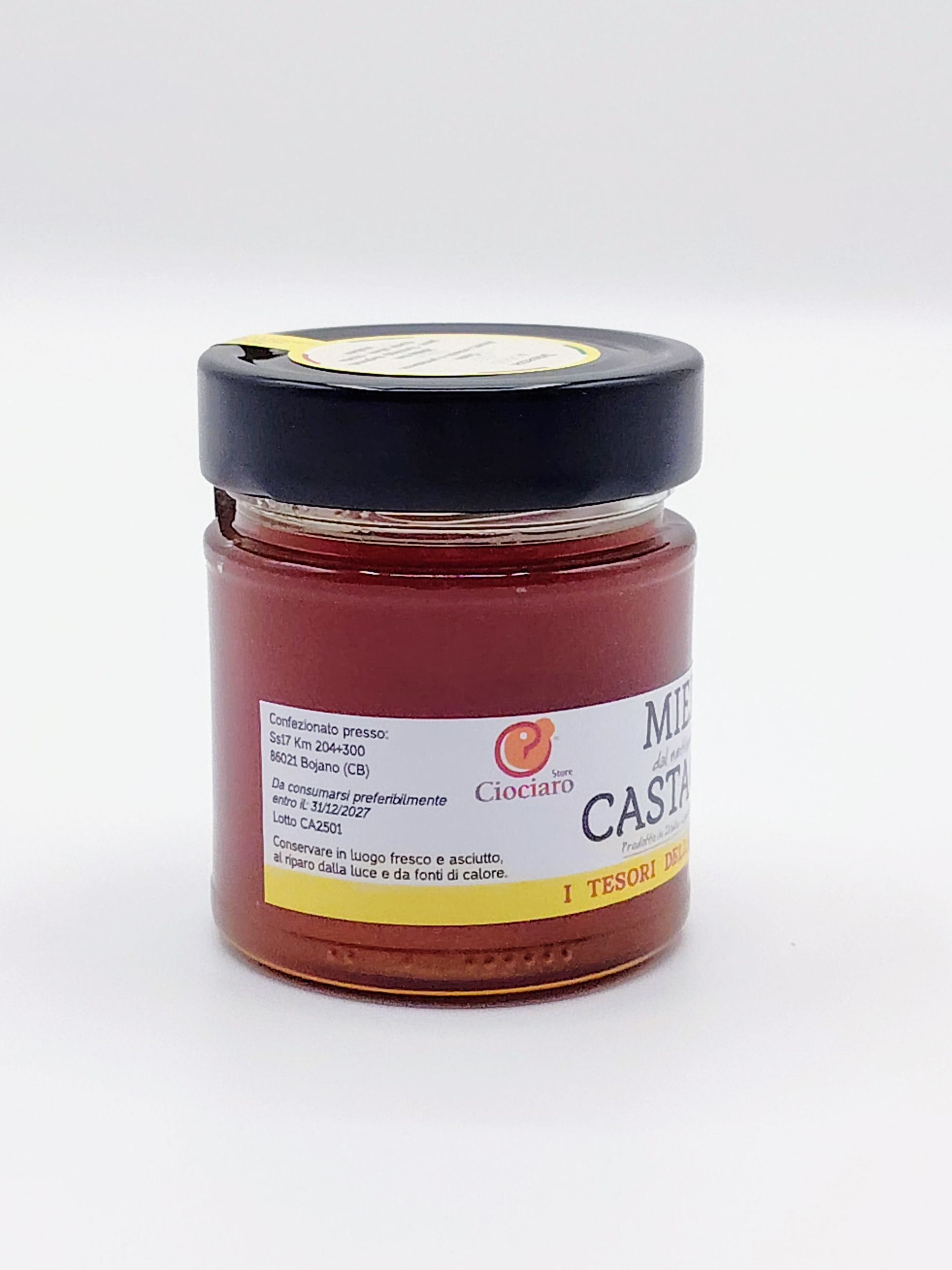 Odora intensamente di fiori di castagno, ricorda i profumi di camomilla essiccata; aromatico, legnoso. Rosso come una fresca birra doppio malto, raramente tende alla cristallizzazione. Un miele dalle elevate percentuali di sali minerali.