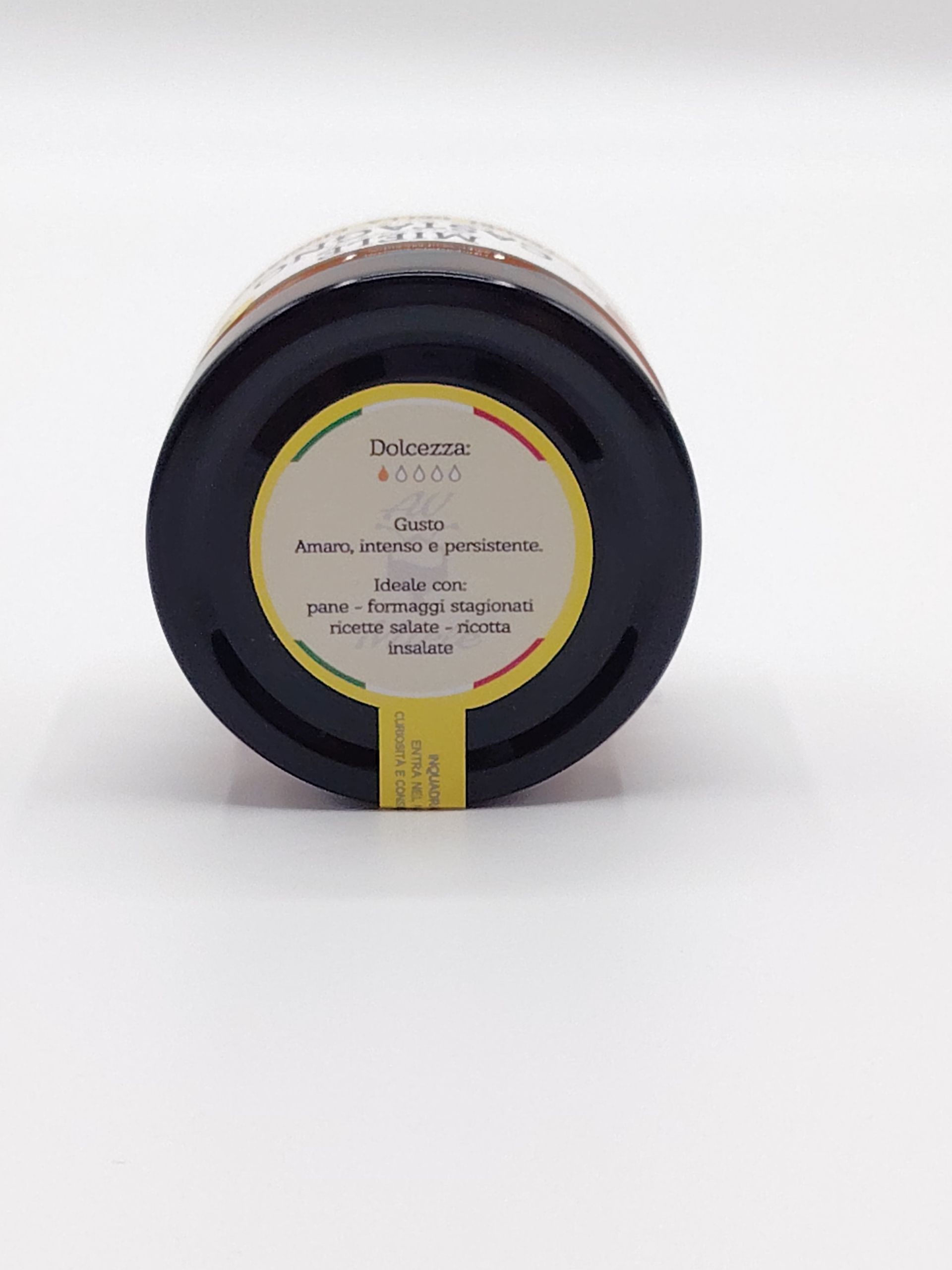 Gusto: miele intenso al palato, dal sapore robusto e persistente, l’amaro che non troviamo in altri mieli, qui si fa sentire!