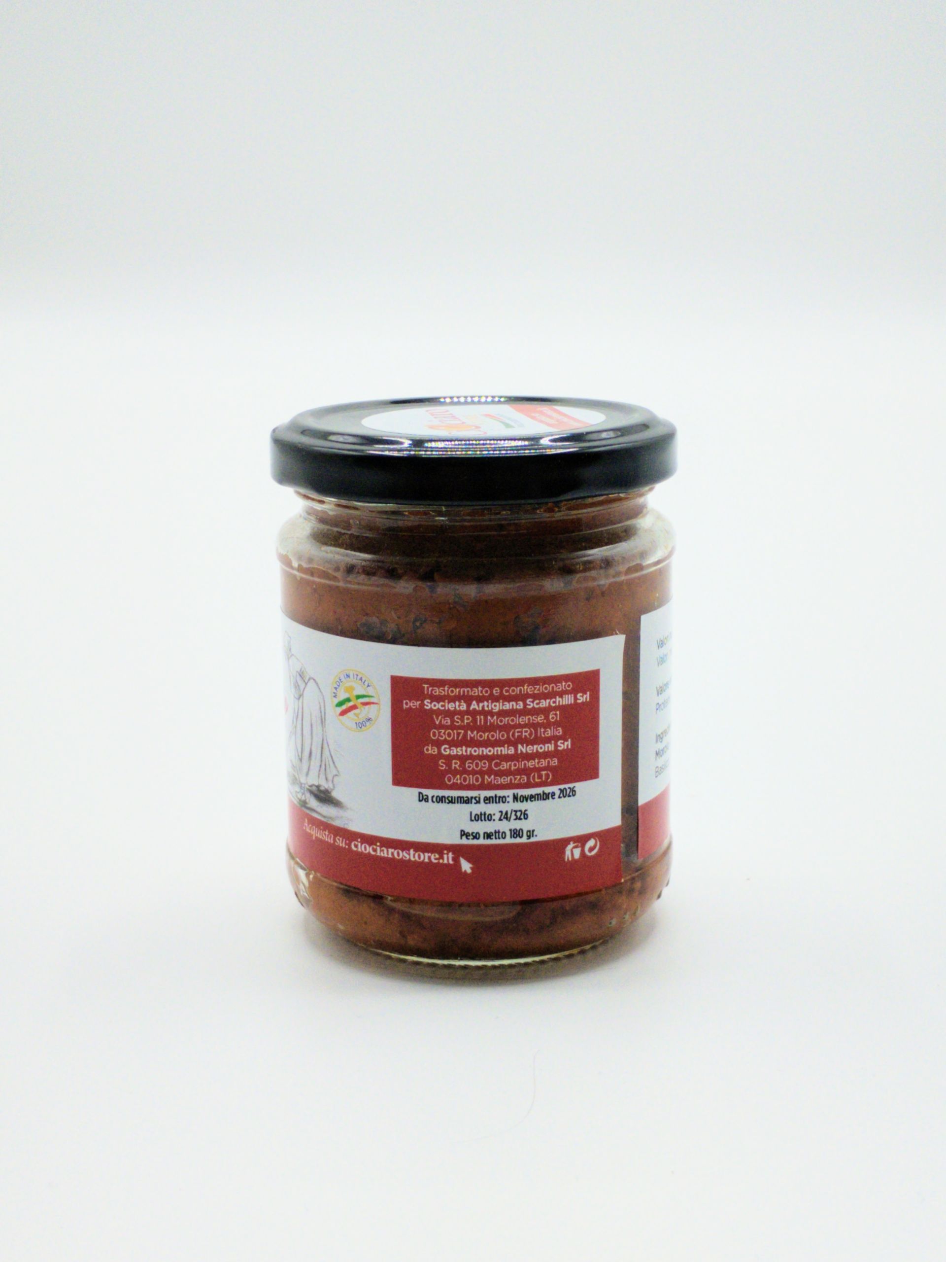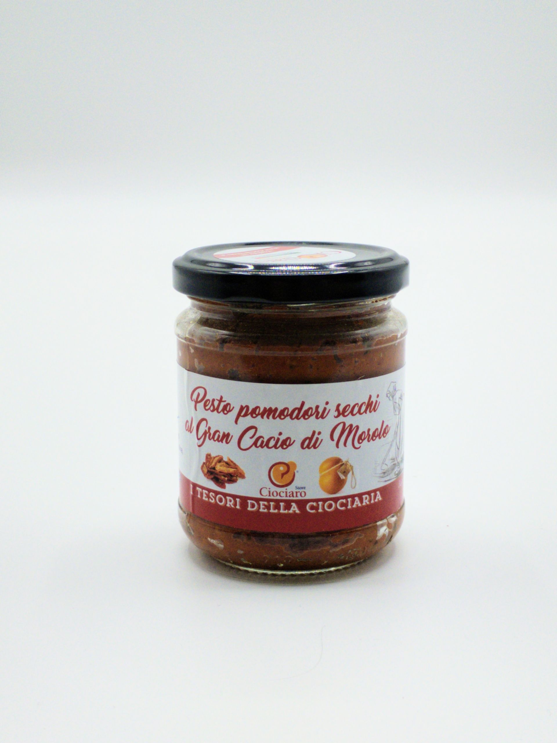 | Ingredienti: | Pomodori secchi, Olive, Gran Cacio di Morolo (Latte, sale, caglio), Olio Extra vergine di oliva, Basilico, Sale, Acidificante E270 acido lattico |